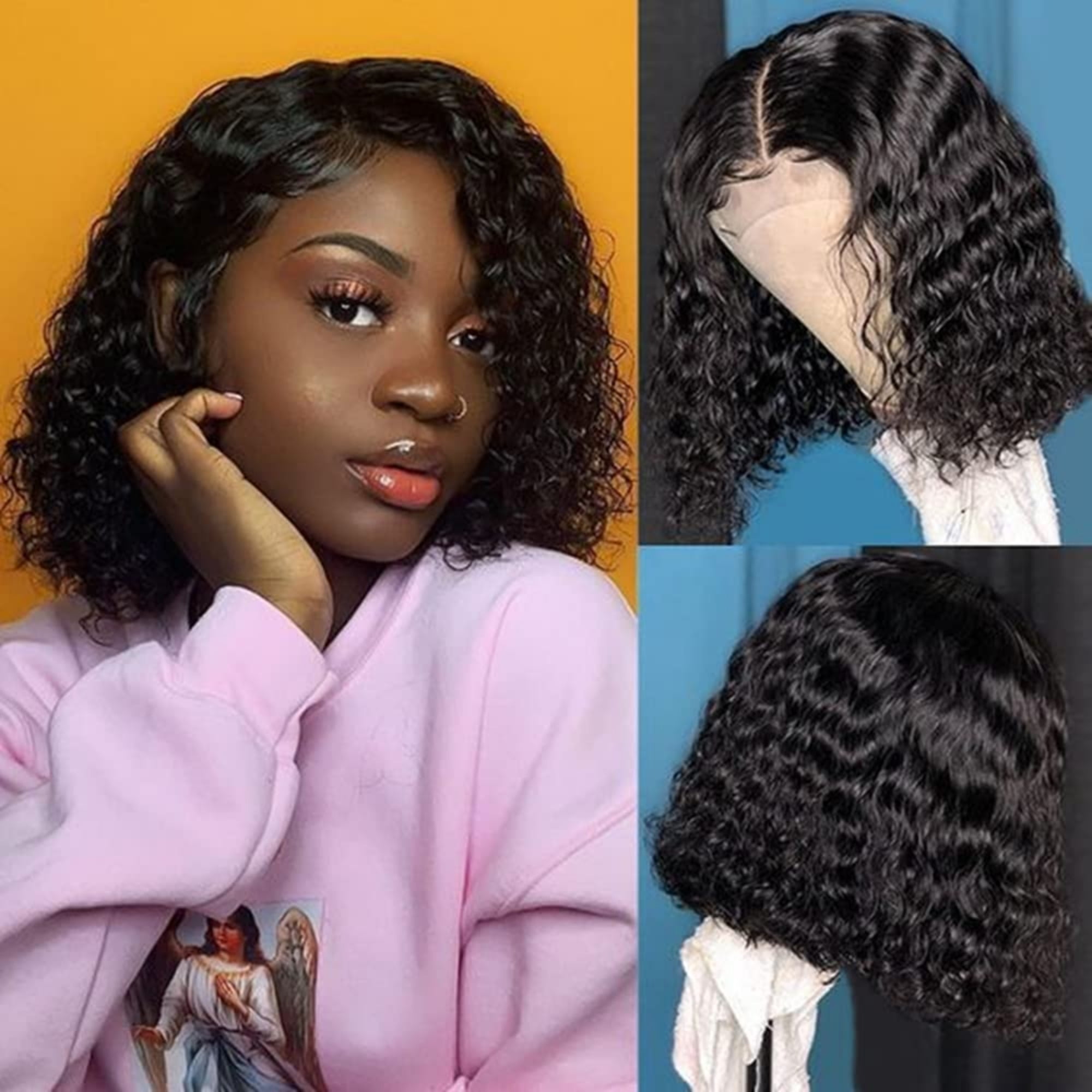 Beauhair Human Hair Bob Wig 4 4 Water Wave Bob Lace Closure Human Hair Wigs Pre Plucked With Baby Hair Natural Color 12 Inch Walmart Com